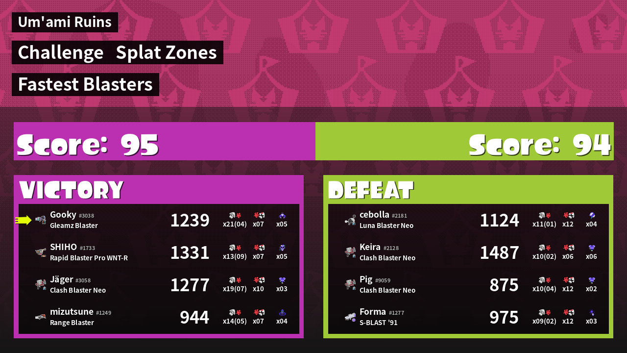 | Medals | #1 Overall Splatter #1 Splat Zone Guard #1 Popular Target | ||