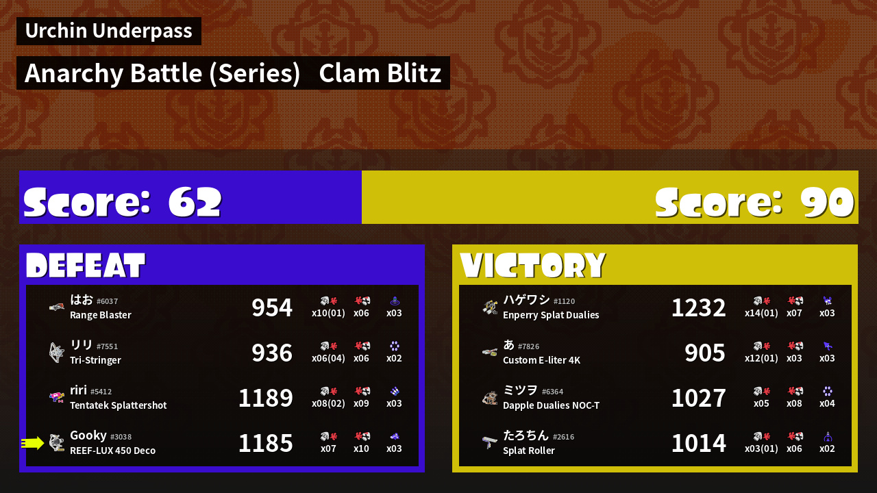 | Mode | Clam Blitz - Anarchy Battle (Series) | ||