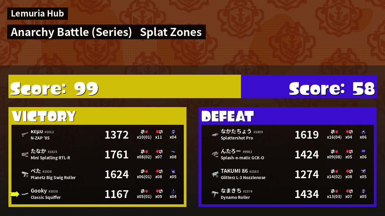 | Mode | Splat Zones - Anarchy Battle (Series) | ||