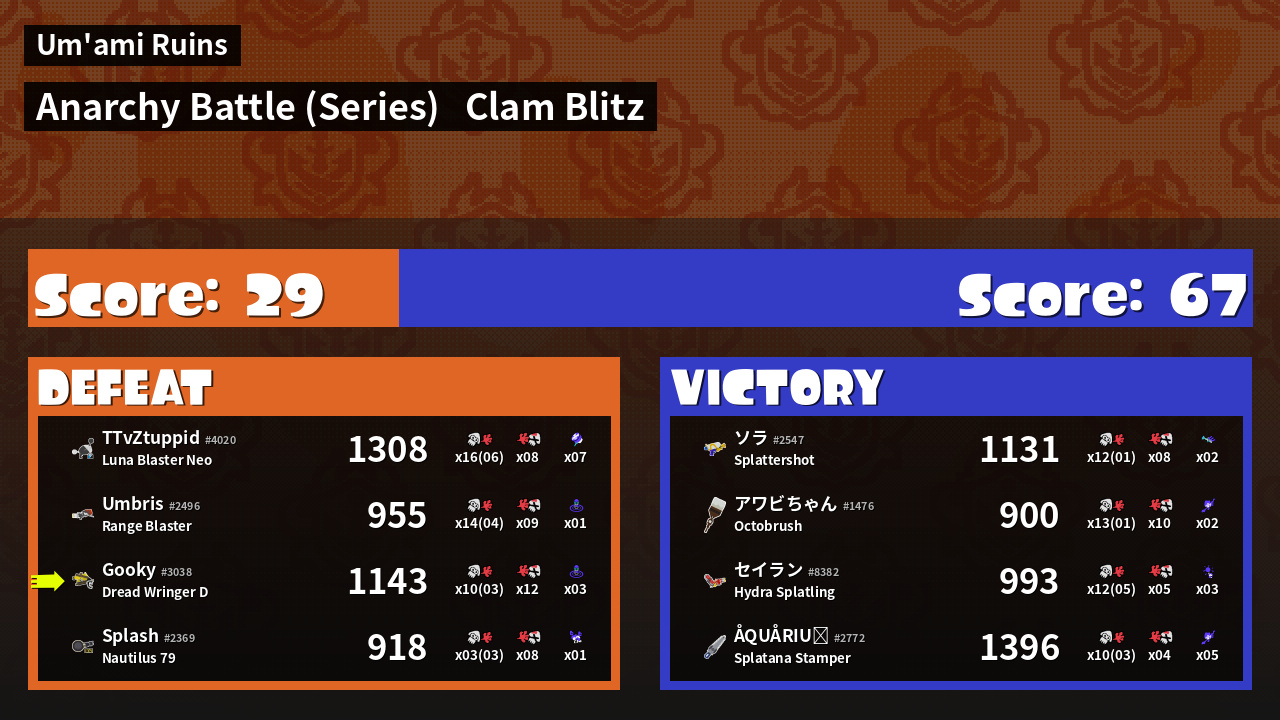 | Mode | Clam Blitz - Anarchy Battle (Series) | ||