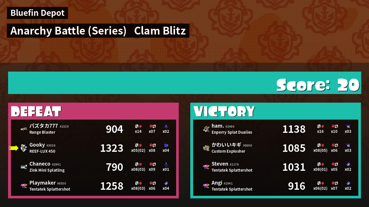 | Mode | Clam Blitz - Anarchy Battle (Series) | ||