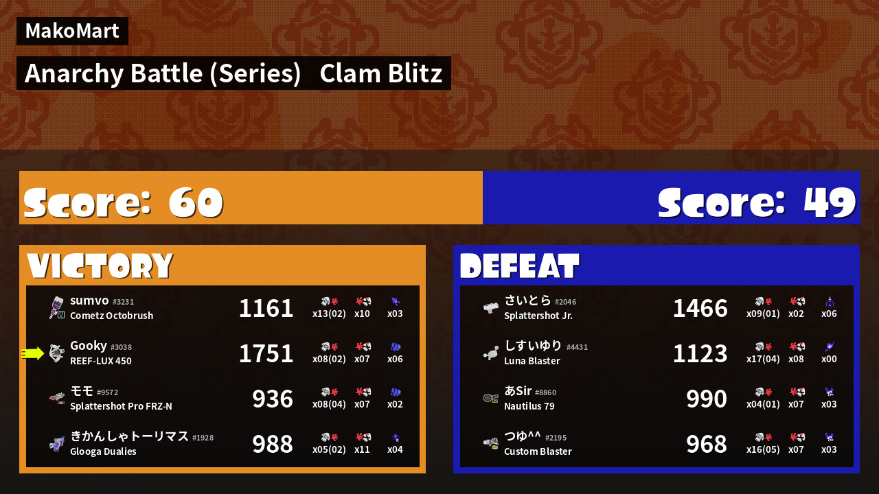 | Mode | Clam Blitz - Anarchy Battle (Series) | ||