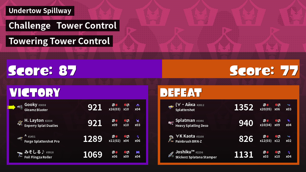 | Medals | #1 Overall Splatter #1 Popular Target #1 Super Jump Spot | ||
