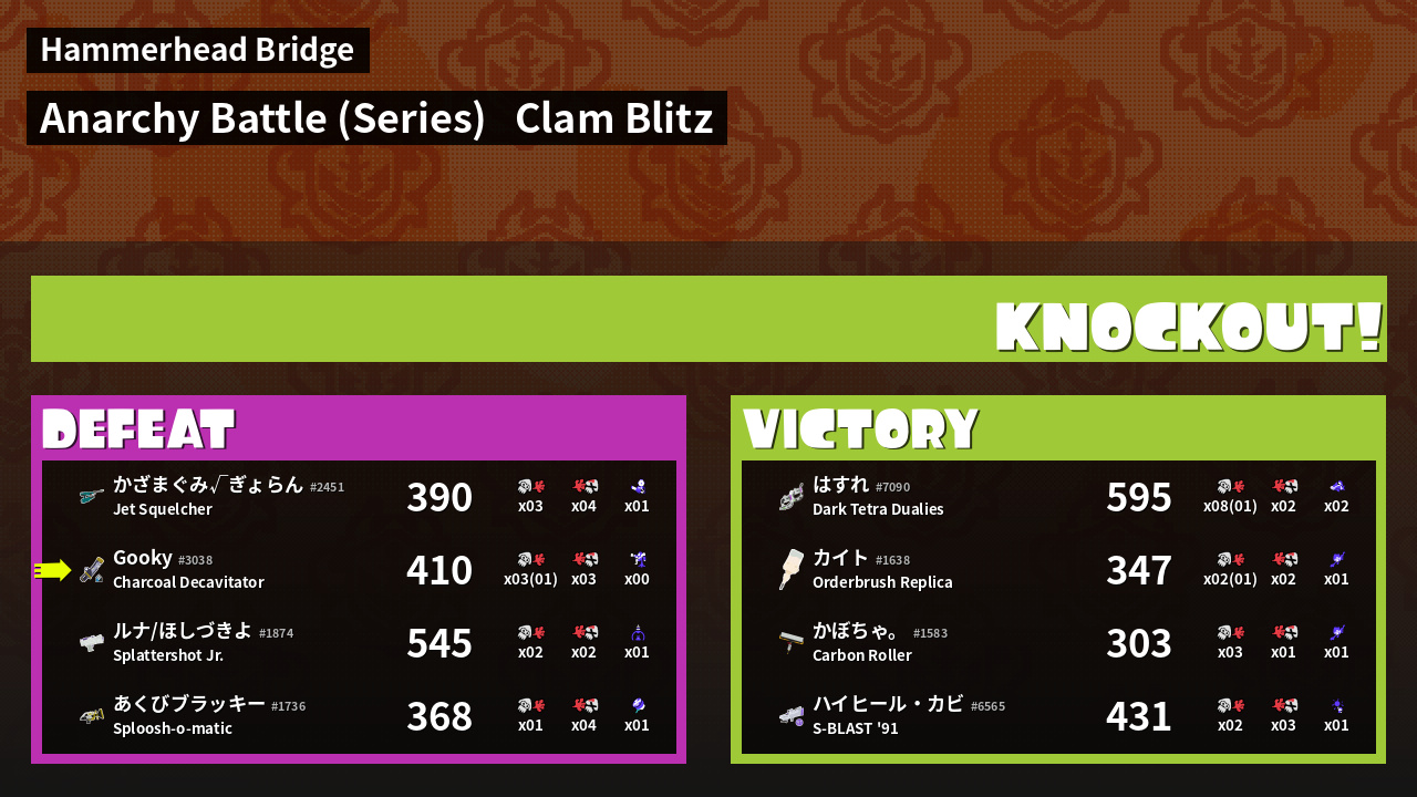 | Mode | Clam Blitz - Anarchy Battle (Series) | ||