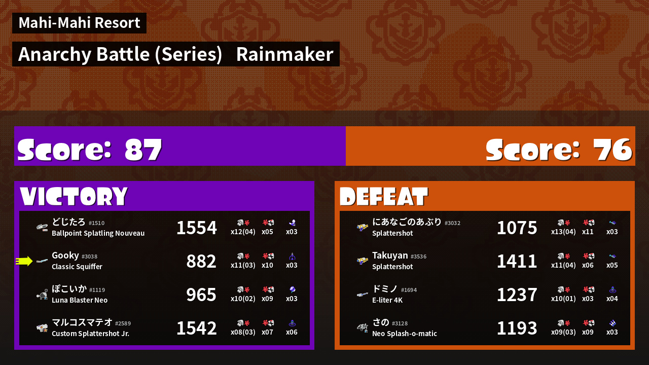 | Mode | Rainmaker - Anarchy Battle (Series) | ||