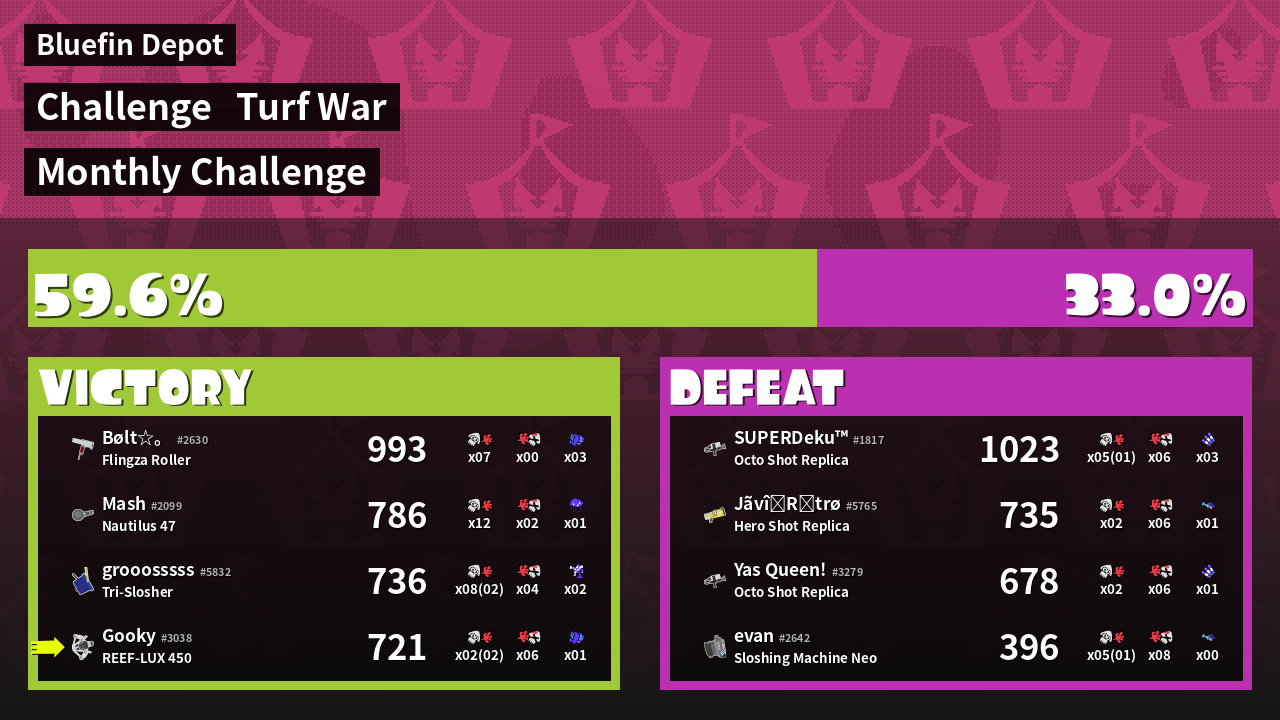 | Medals | #1 Enemy-Base Inker #1 Splat Assister #1 Ground Traveler | ||