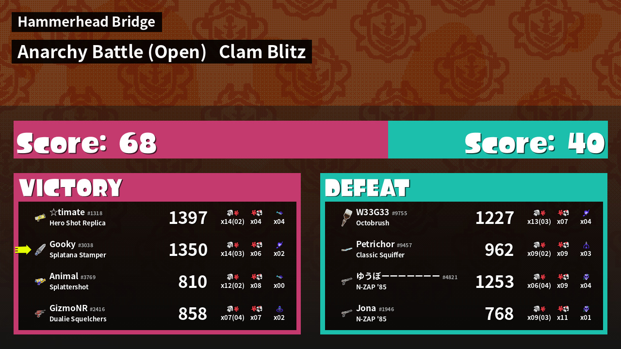 | Mode | Clam Blitz - Anarchy Battle (Open) | ||