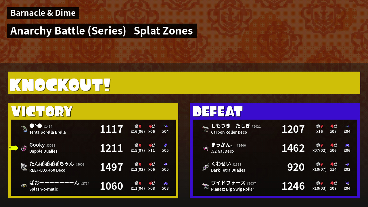 | Mode | Splat Zones - Anarchy Battle (Series) | ||