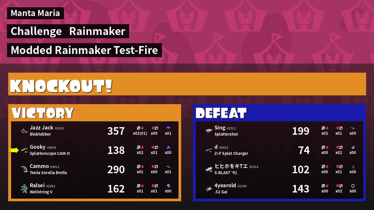 Kills / Deaths | 2 + 0 / 1 > Kill Ratio: 2.00 | ||