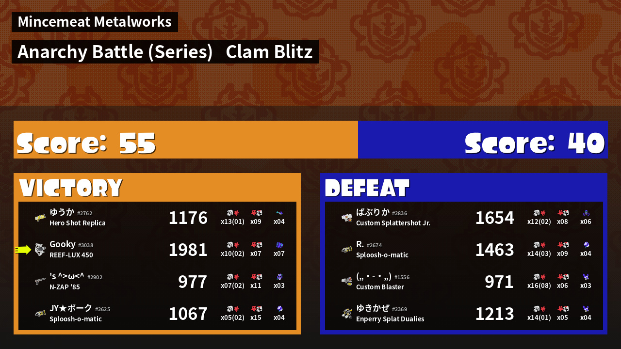 | Mode | Clam Blitz - Anarchy Battle (Series) | ||