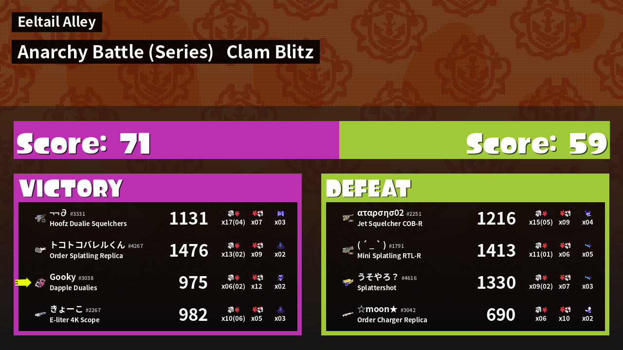 | Mode | Clam Blitz - Anarchy Battle (Series) | ||