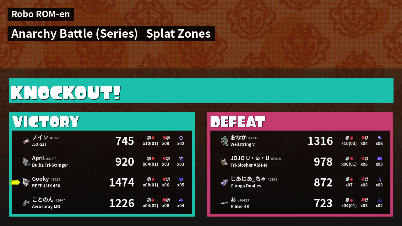 | Mode | Splat Zones - Anarchy Battle (Series) | ||