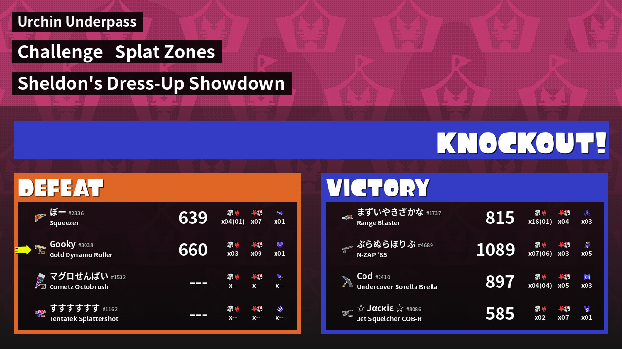 | Medals | #1 Turf Inker #1 Enemy Splatter #1 Ground Traveler | ||