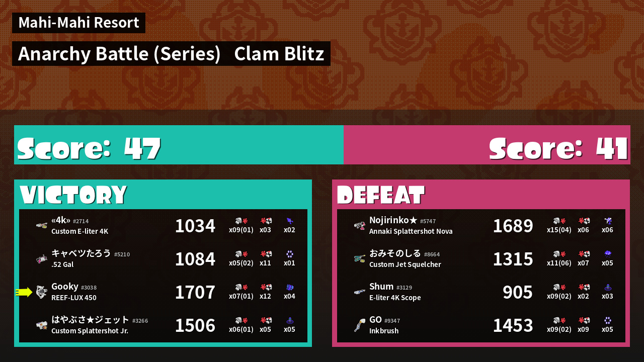 | Mode | Clam Blitz - Anarchy Battle (Series) | ||