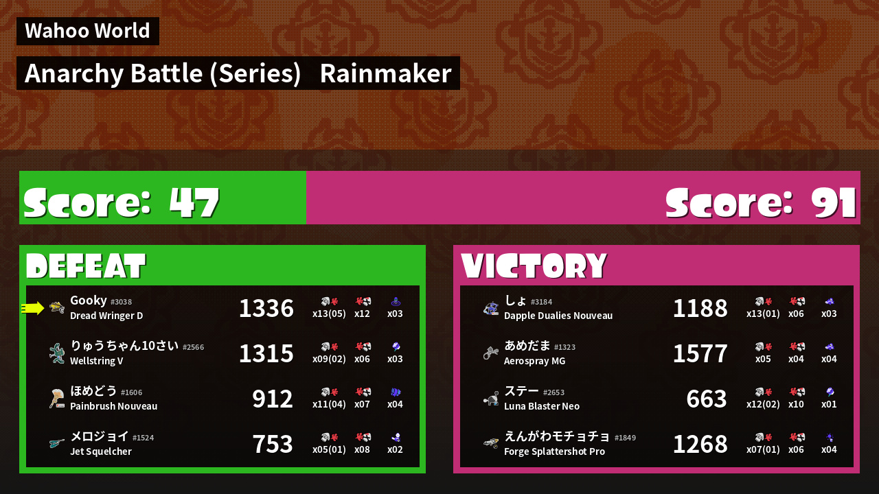 | Medals | #1 Overall Splatter #1 Turf Inker #1 Super Jump Spot | ||