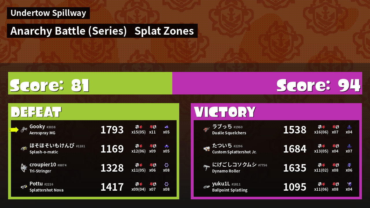 | Mode | Splat Zones - Anarchy Battle (Series) | ||