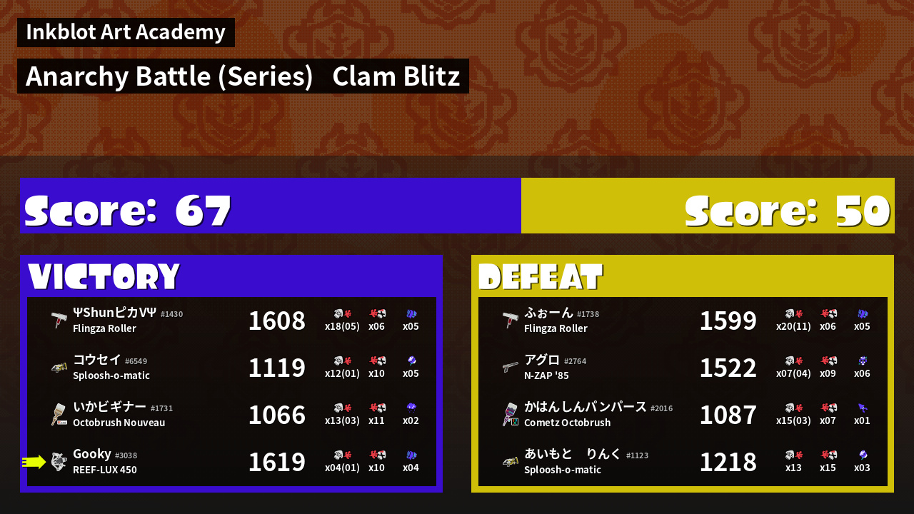 | Mode | Clam Blitz - Anarchy Battle (Series) | ||
