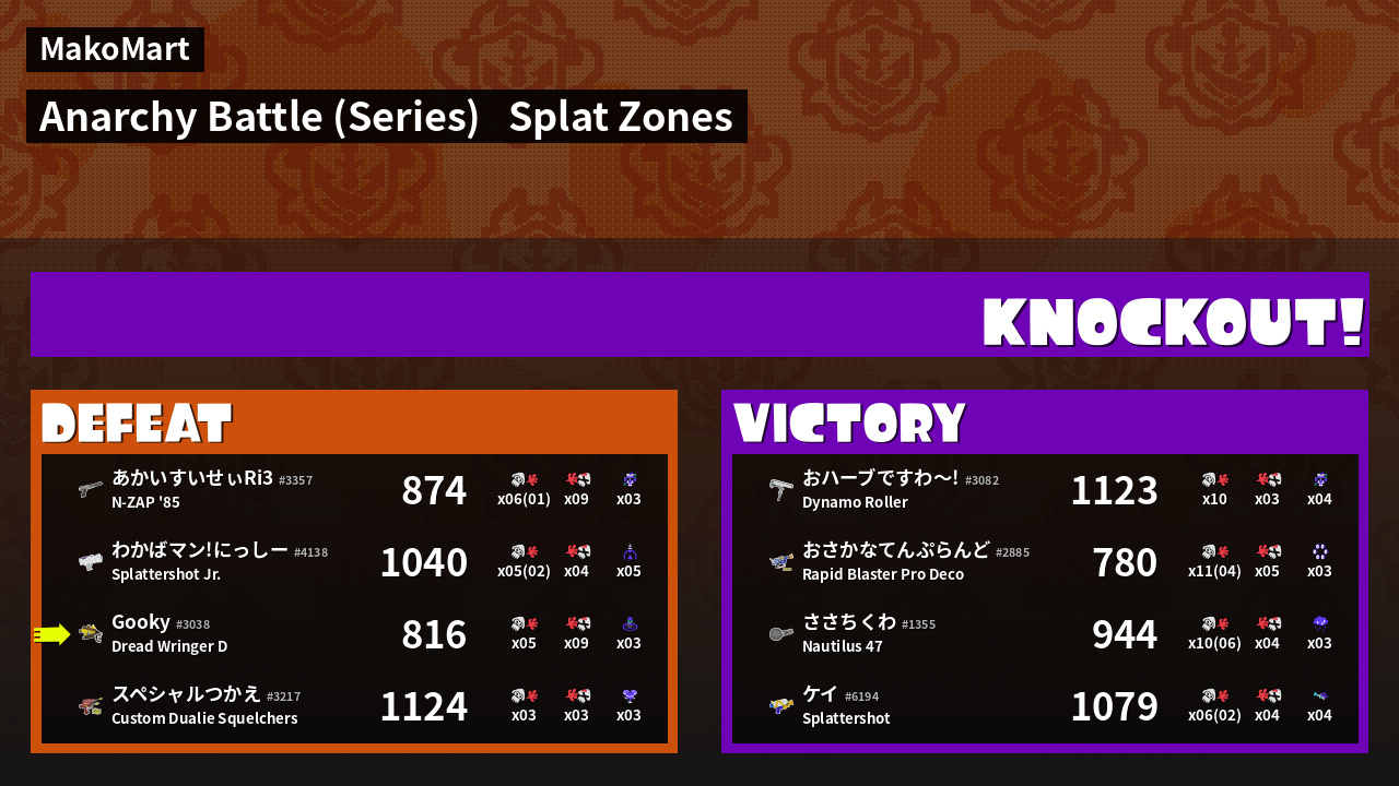 | Mode | Splat Zones - Anarchy Battle (Series) | ||