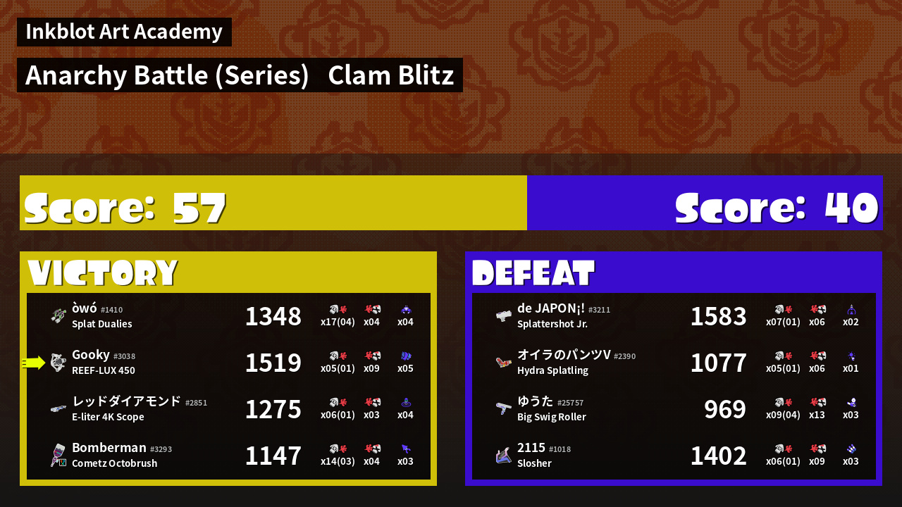 | Mode | Clam Blitz - Anarchy Battle (Series) | ||