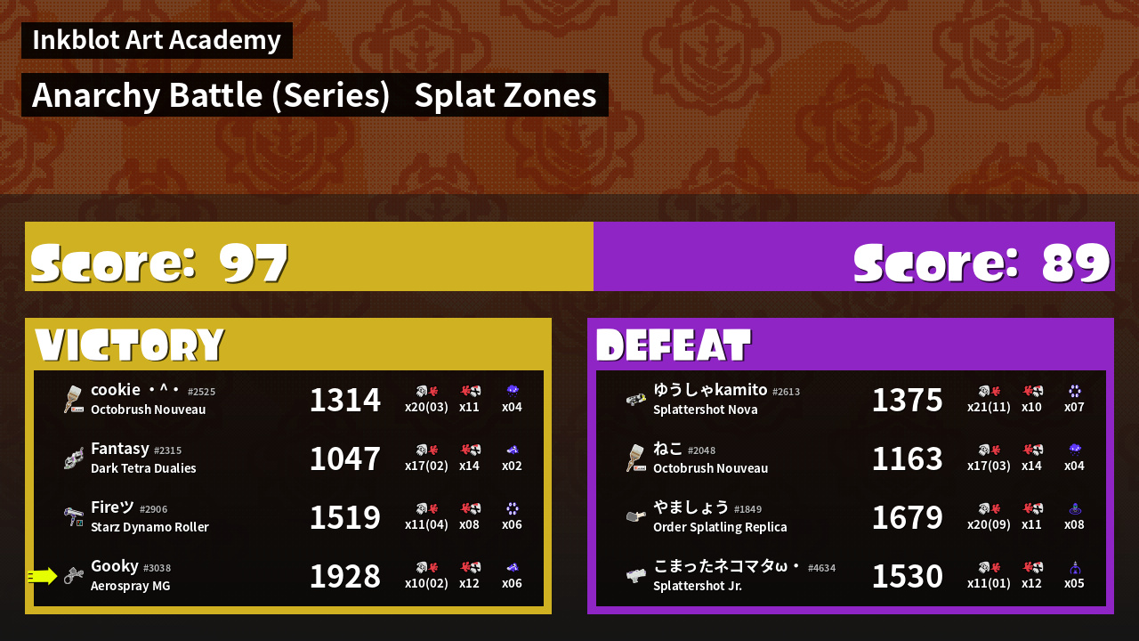 | Mode | Splat Zones - Anarchy Battle (Series) | ||