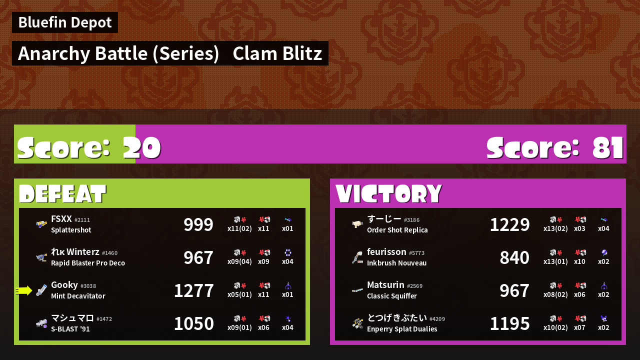 | Mode | Clam Blitz - Anarchy Battle (Series) | ||