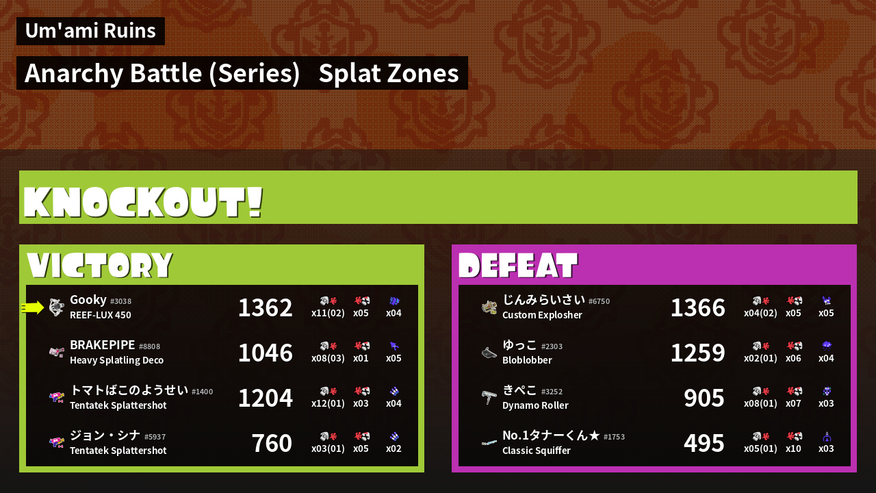 | Mode | Splat Zones - Anarchy Battle (Series) | ||
