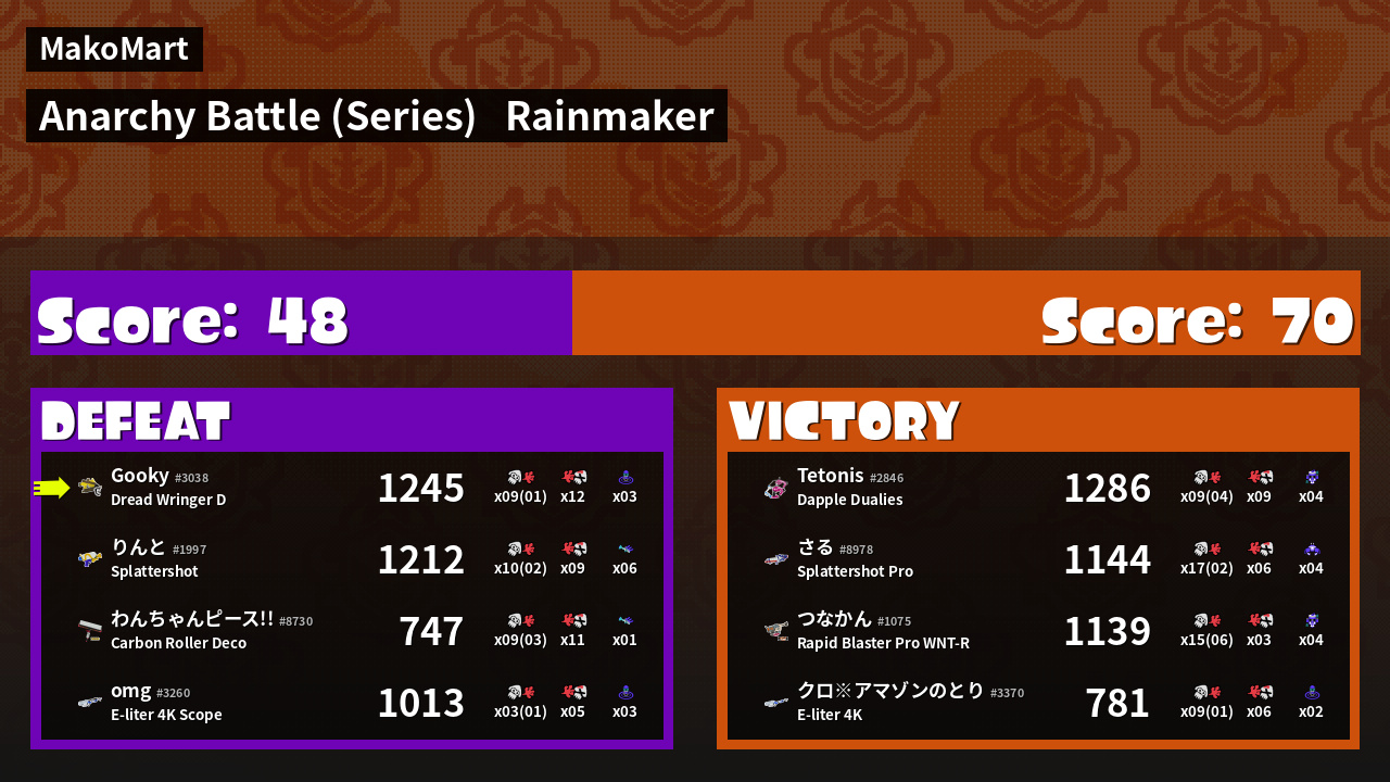 | Mode | Rainmaker - Anarchy Battle (Series) | ||