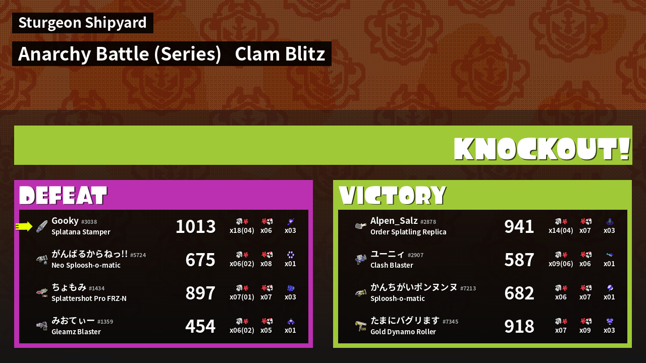 | Mode | Clam Blitz - Anarchy Battle (Series) | ||