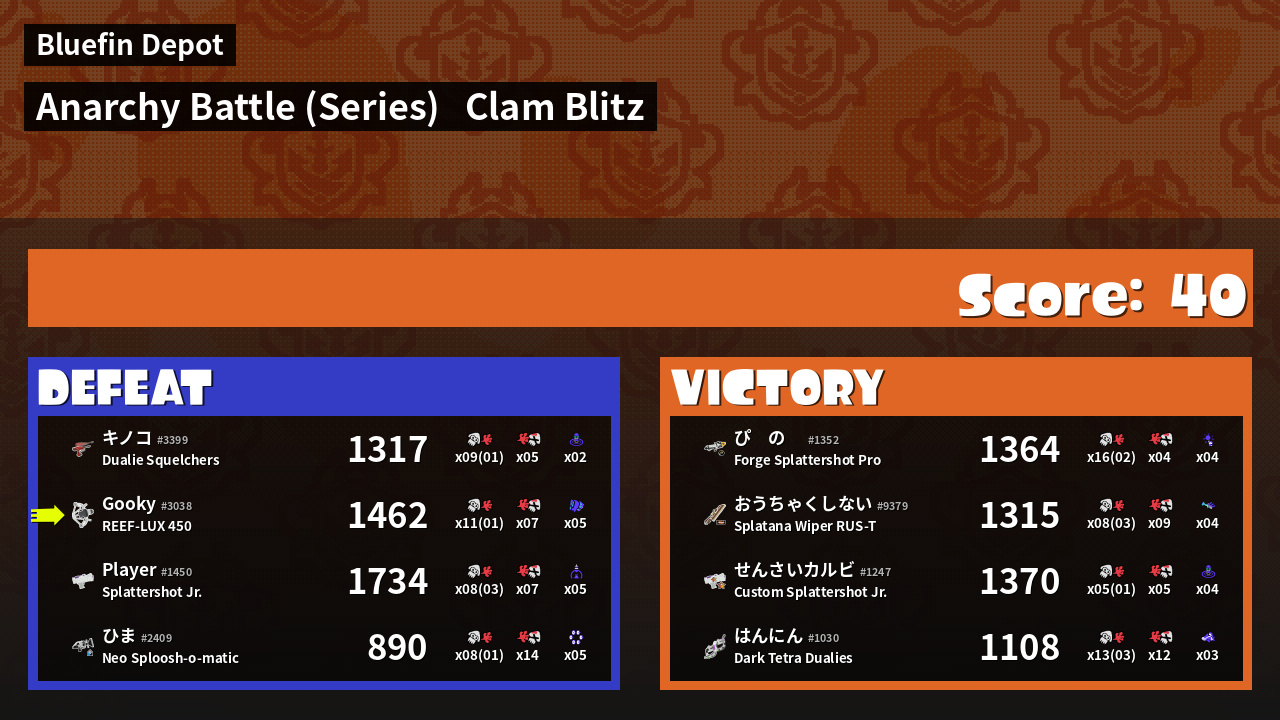 | Mode | Clam Blitz - Anarchy Battle (Series) | ||