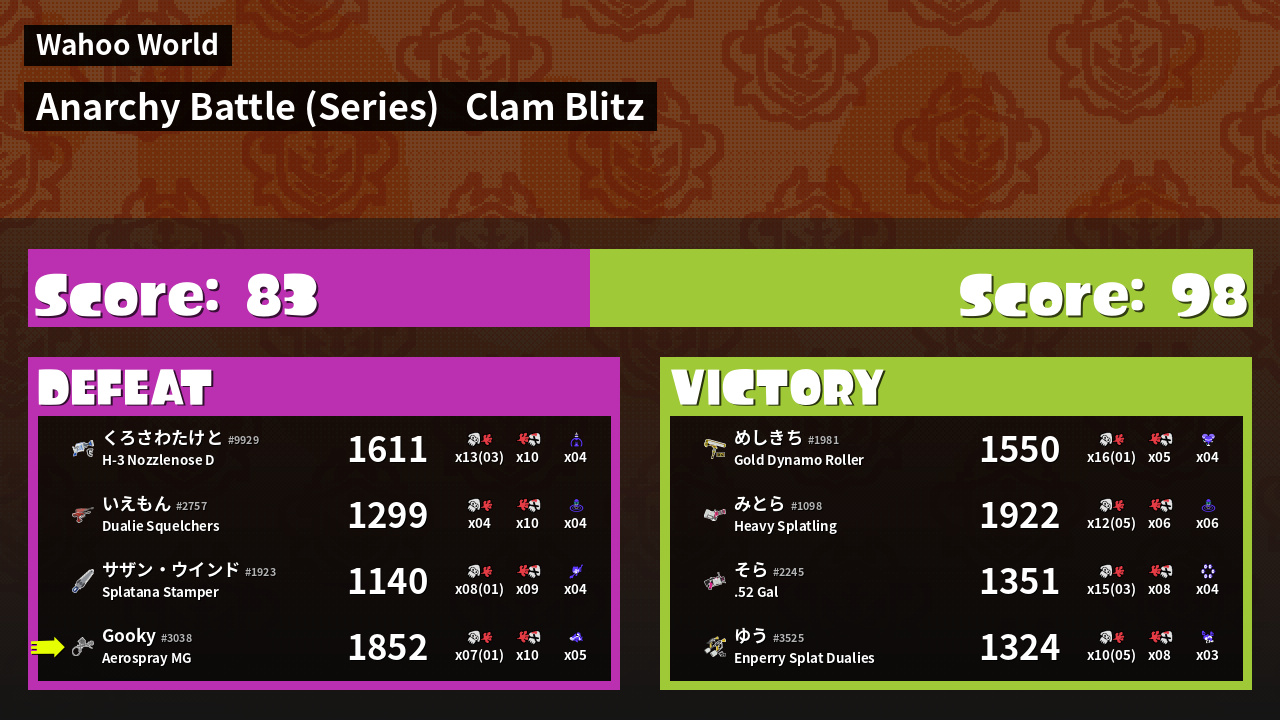 | Mode | Clam Blitz - Anarchy Battle (Series) | ||
