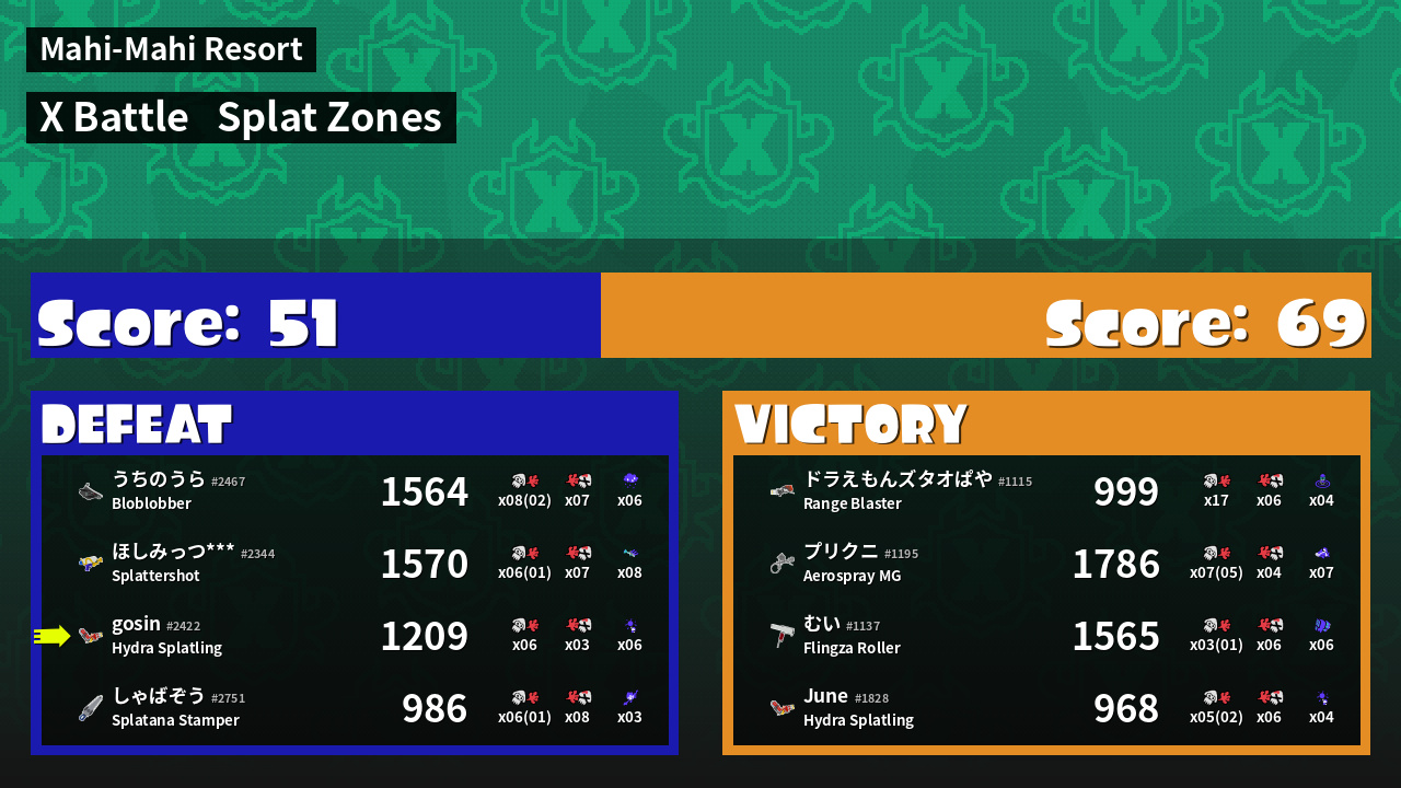 | Medals | #1 Enemy Splatter #2 Overall Splatter #2 Popular Target | ||