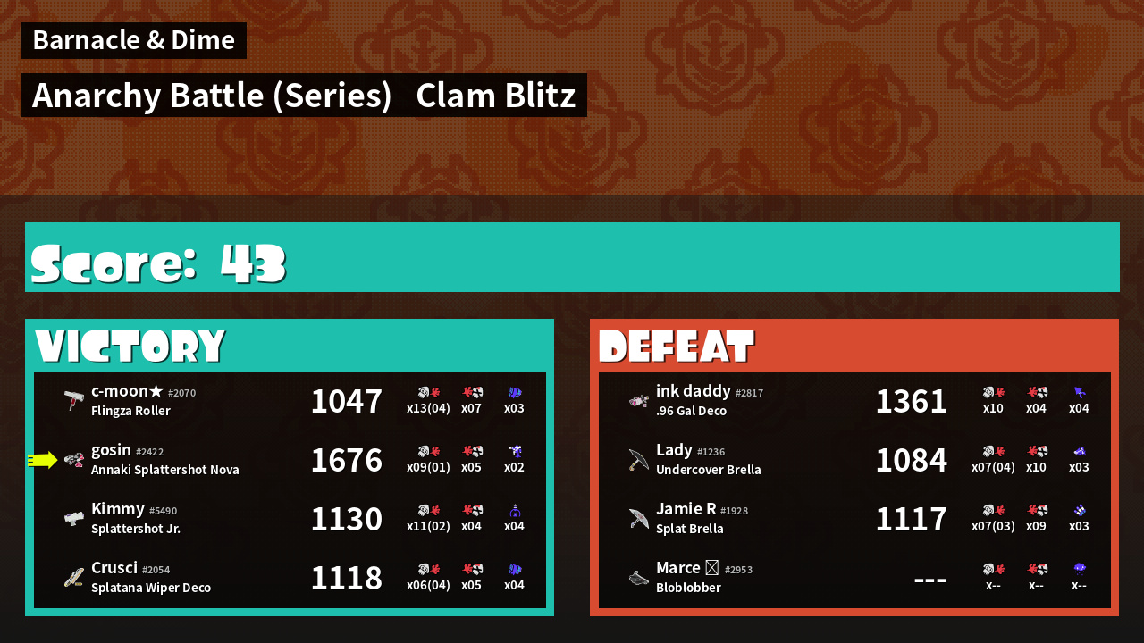 | Mode | Clam Blitz - Anarchy Battle (Series) | ||