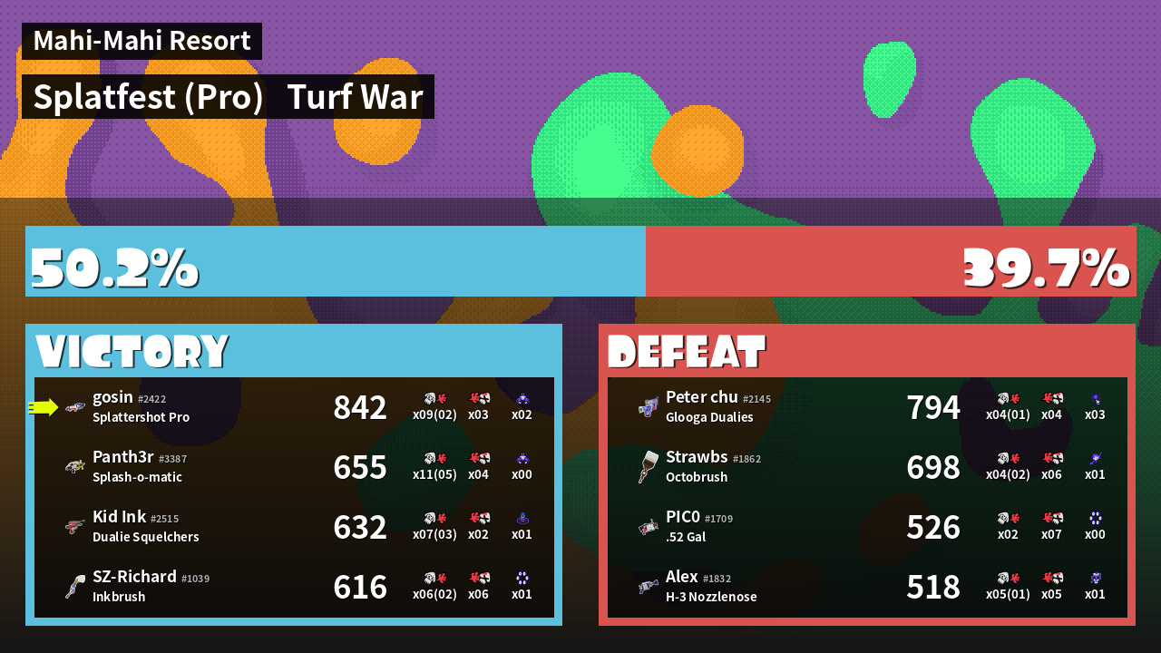| Mode | Turf War - Splatfest (Pro) | ||