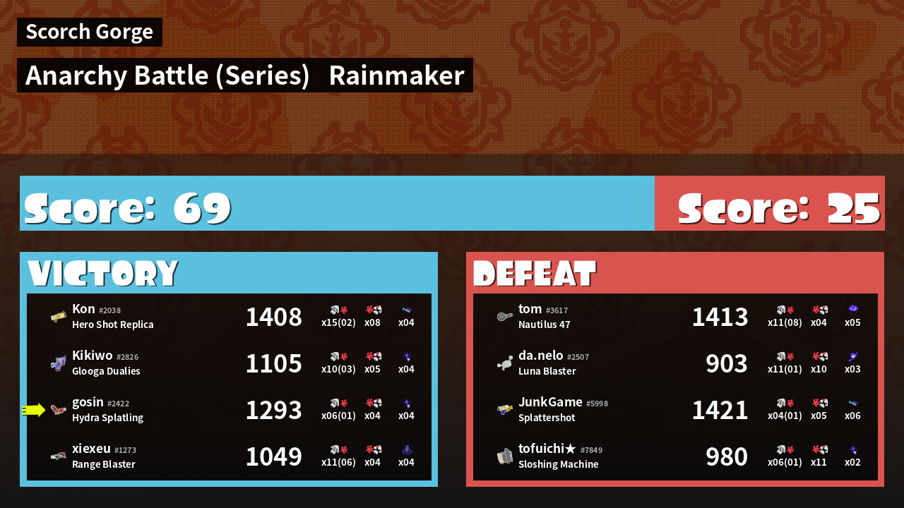 | Jet-Black Giant gosin #2422 |  Hydra Splatling     | 1,293 | 5 + 1 | 4 | 1.25 |  4 | |
