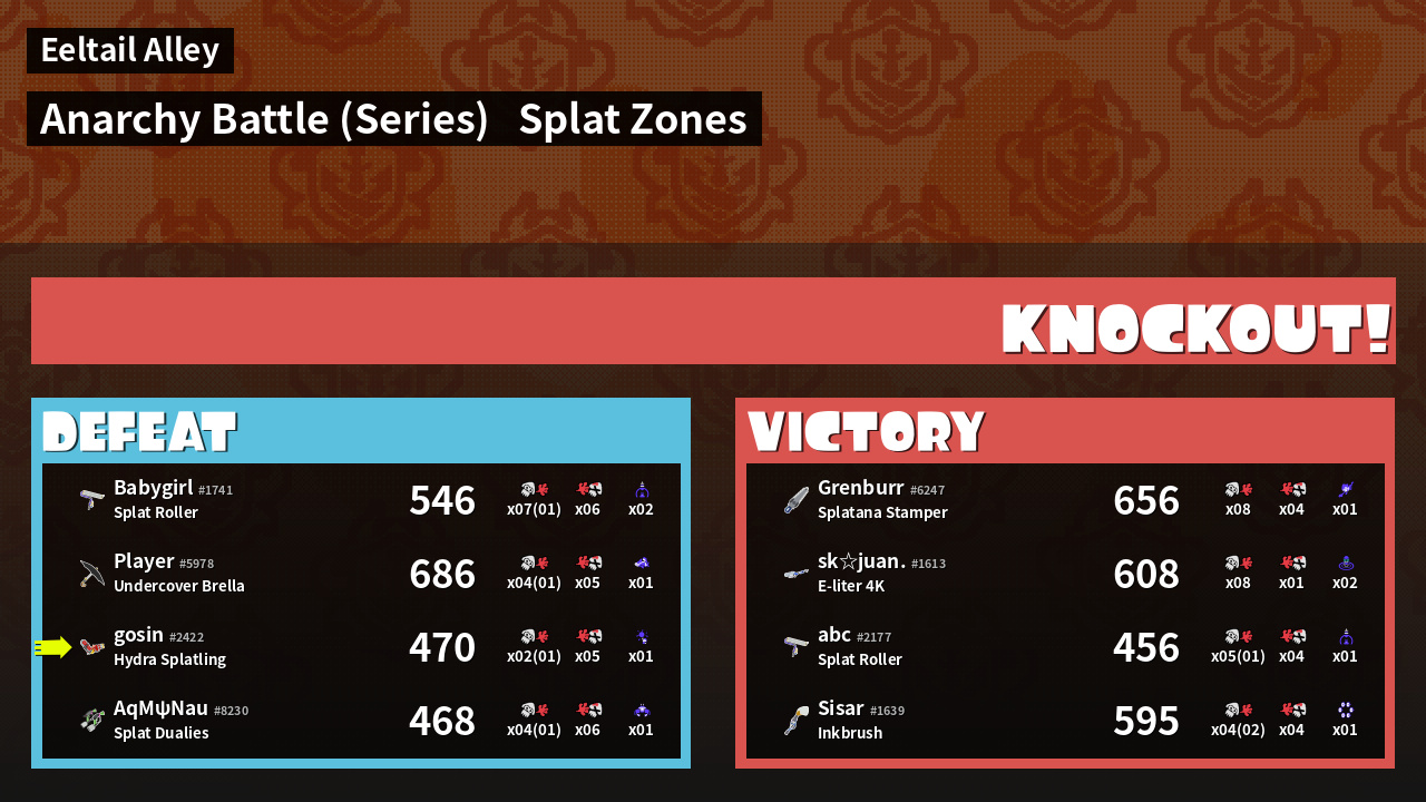 | Mode | Splat Zones - Anarchy Battle (Series) | ||