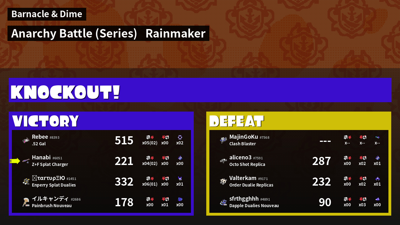 | Mode | Rainmaker - Anarchy Battle (Series) | ||