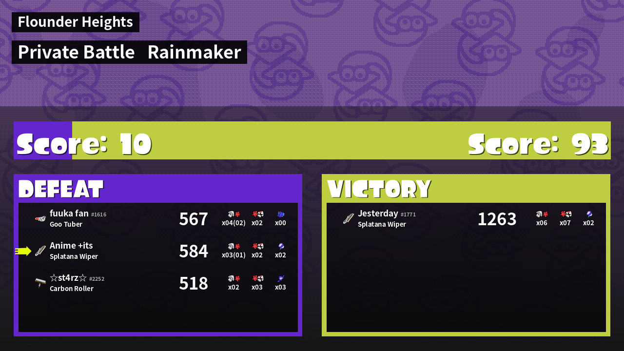 | Medals | #1 Turf Inker #1 Super Jump Spot #1 Enemy Splatter | ||