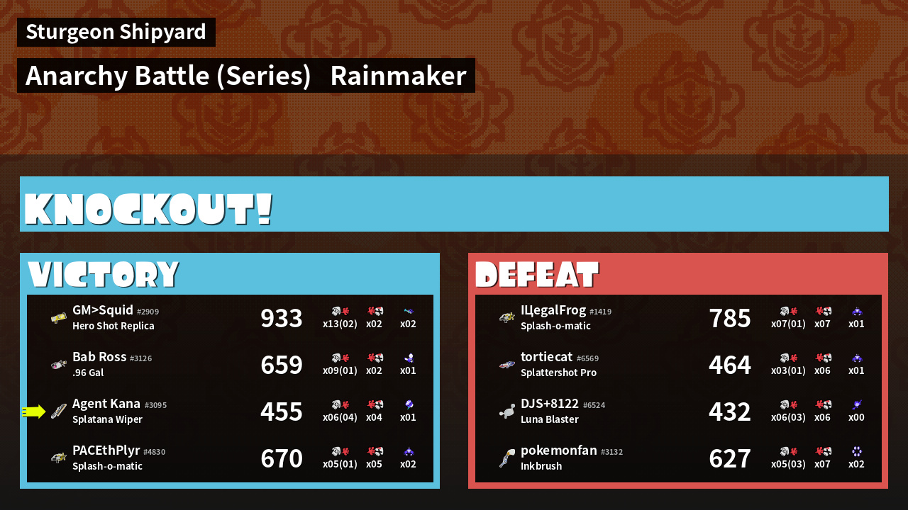 | Medals | #1 Splat Assister #1 Rainmaker Stopper #1 Damage Taker | ||