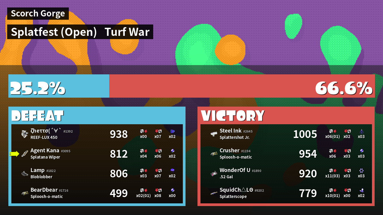 | Medals | #1 Overall Splatter #1 Popular Target #1 Enemy-Base Inker | ||