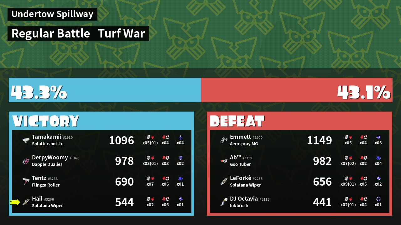 | Mode | Turf War - Regular Battle | ||