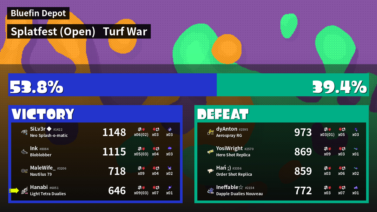| Medals | #1 Overall Splatter #1 Enemy-Base Inker #1 Splat Assister | ||