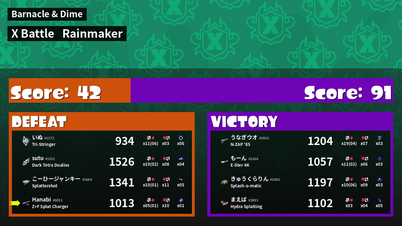 | Mode | Rainmaker - X Battle | ||