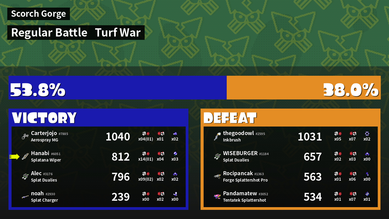 | Medals | #1 Overall Splatter #1 Popular Target #1 Enemy-Base Inker | ||