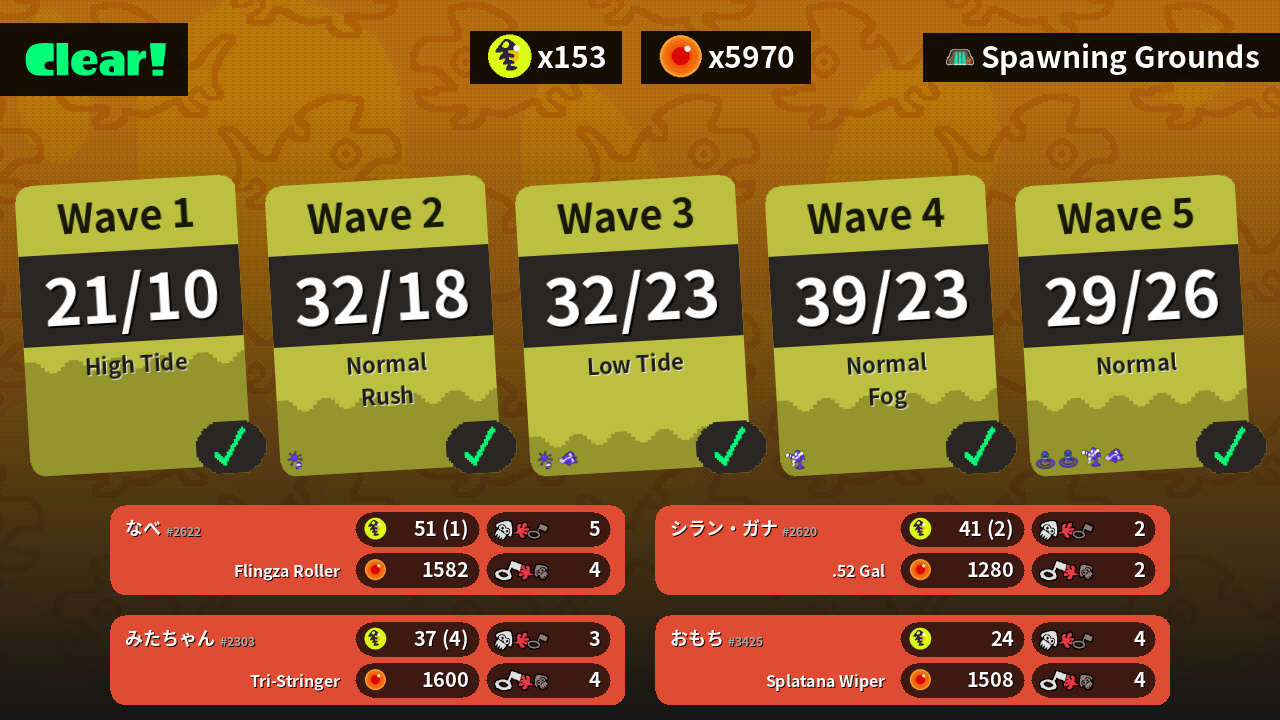 | Weapons | Flingza Roller | .52 Gal | Tri-Stringer | Splatana Wiper |