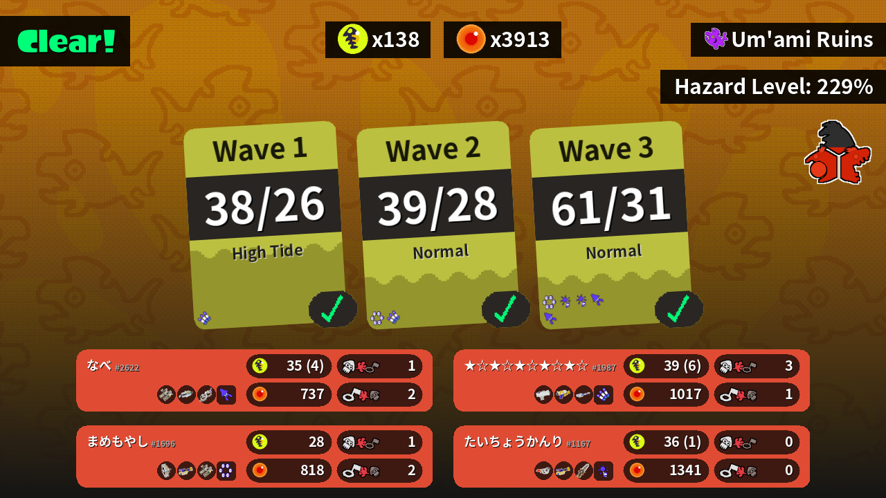 | Boss Salmonid | 15 | 21 | 19 | 12 |