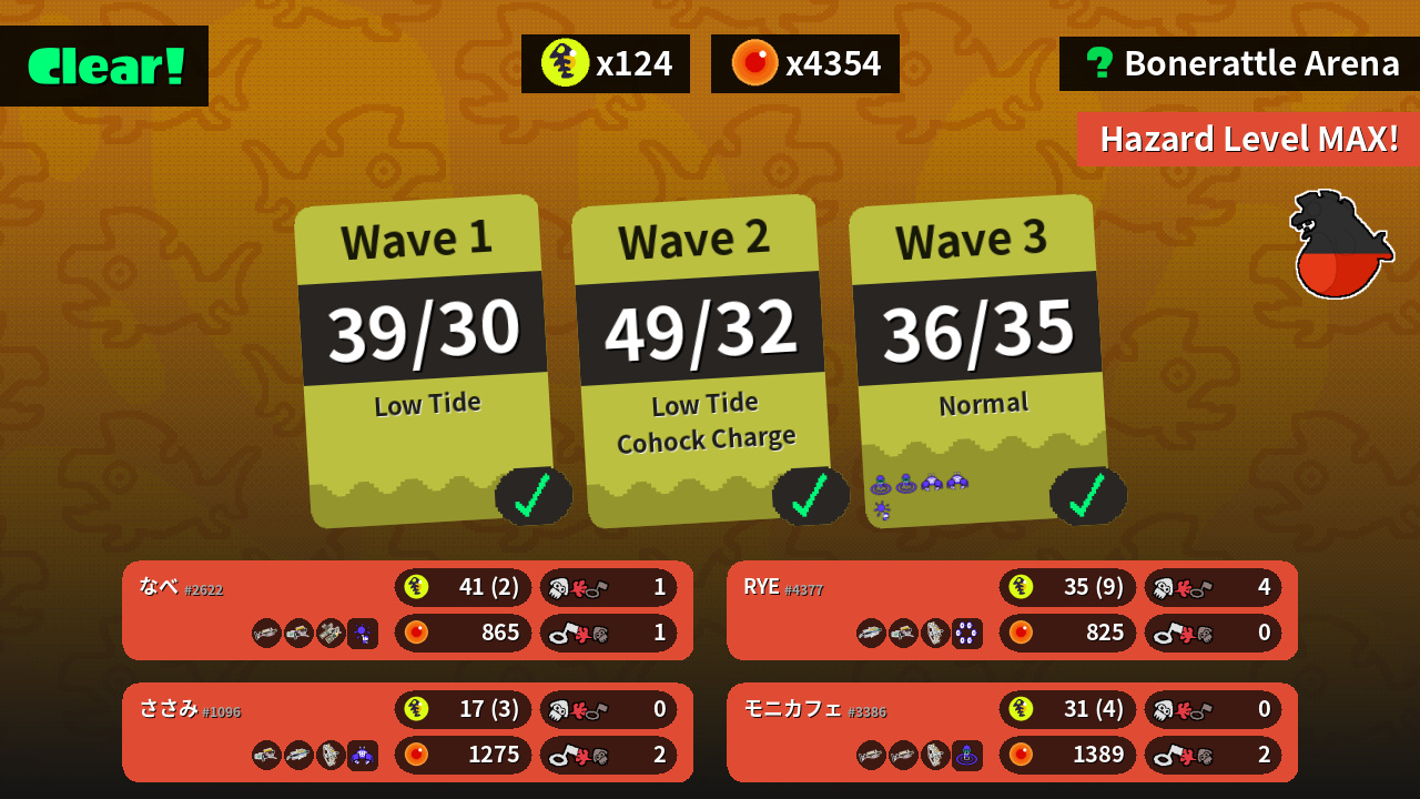| Weapons | Grizzco Charger Grizzco Blaster Grizzco Dualies | Grizzco Brella Grizzco Blaster Grizzco Stringer | Grizzco Charger Grizzco Charger Grizzco Stringer | Grizzco Blaster Grizzco Brella Grizzco Stringer |