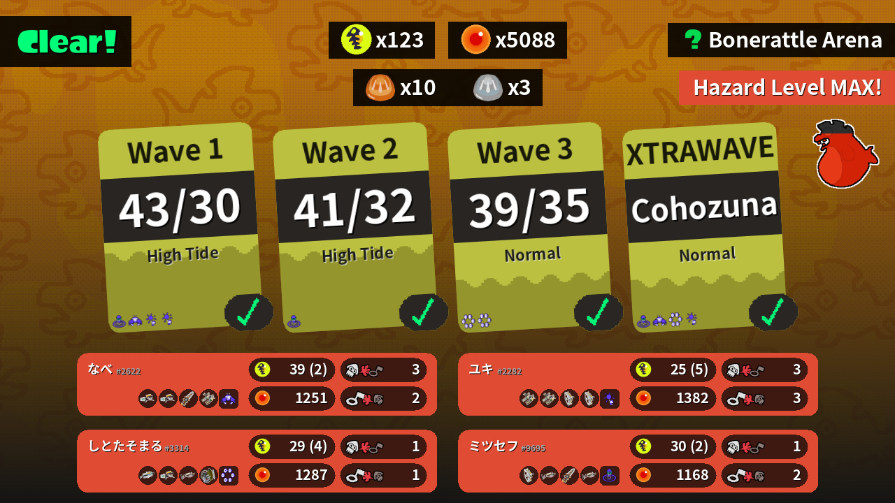 | Weapons | Grizzco Blaster Grizzco Blaster Grizzco Splatana Grizzco Dualies | Grizzco Stringer Grizzco Charger Grizzco Splatana Grizzco Charger | Grizzco Brella Grizzco Blaster Grizzco Charger Grizzco Slosher | Grizzco Dualies Grizzco Dualies Grizzco Stringer Grizzco Stringer |