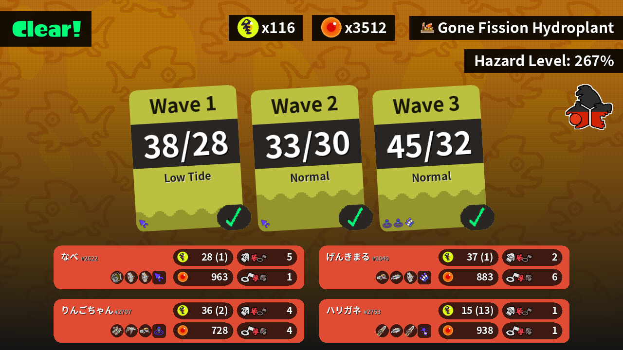 | Weapons | Grizzco Slosher Grizzco Stringer Grizzco Stringer | Grizzco Blaster Grizzco Brella Grizzco Stringer | Grizzco Dualies Grizzco Roller Grizzco Blaster | Grizzco Splatana Grizzco Brella Grizzco Splatana |