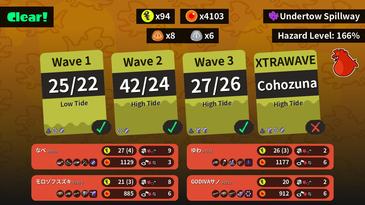 | Weapons | Mini Splatling Bloblobber Ballpoint Splatling Undercover Brella | Grizzco Charger Octobrush Slosher Dualie Squelchers | Splash-o-matic Grizzco Charger Bamboozler 14 Mk I Clash Blaster | Snipewriter 5H Splash-o-matic N-ZAP '85 Glooga Dualies |