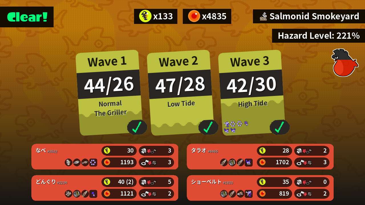 | Weapons | Grizzco Stringer Grizzco Brella Grizzco Charger | Grizzco Dualies Grizzco Slosher Grizzco Splatana | Grizzco Slosher Grizzco Splatana Grizzco Blaster | Grizzco Splatana Grizzco Slosher Grizzco Splatana |